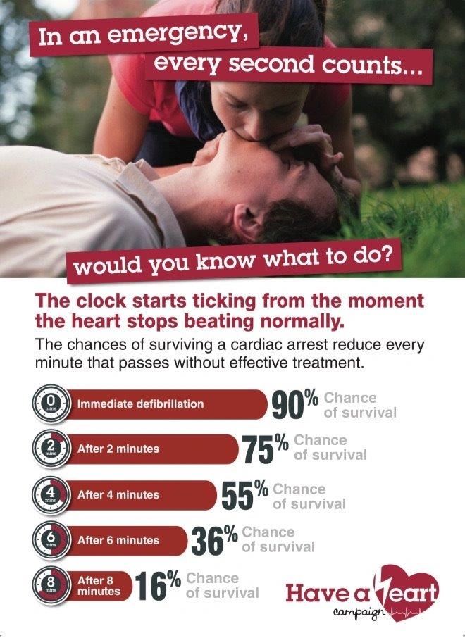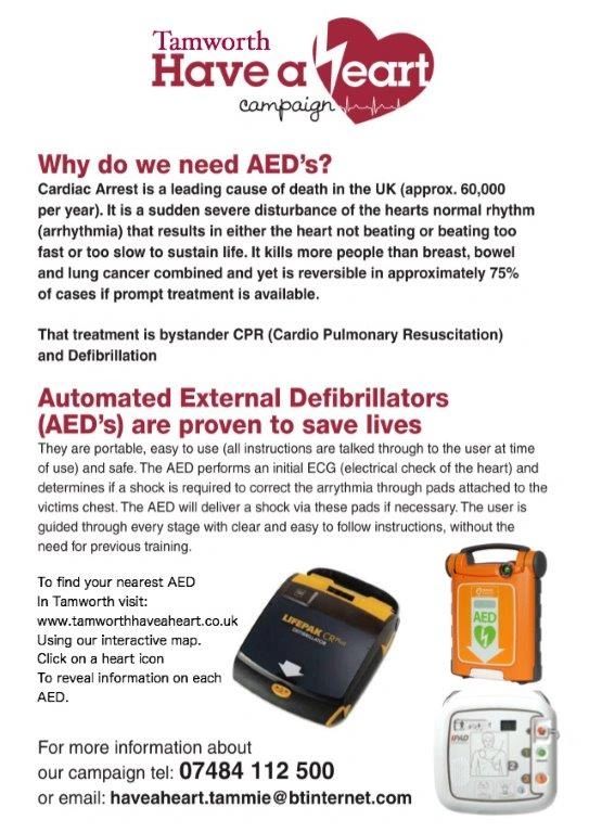 Using a defibrillator is the best next step in lifesaving . An AED (defibrillator), when connected to the patient's chest correctly, will determine the heart rhythm and decide if shocking the heart will be of benefit. In the first few minutes following an SCA, the heart is in a rhythm known as Ventricular Fibrillation (VF) and is not beating nor providing any output to the circulatory system. An AED may interrupt this rhythm and allow the heart to restore to its normal beating rhythm. (See our clip in the media section on accessing a defibrillator https://tamworthhaveaheart.com/media)